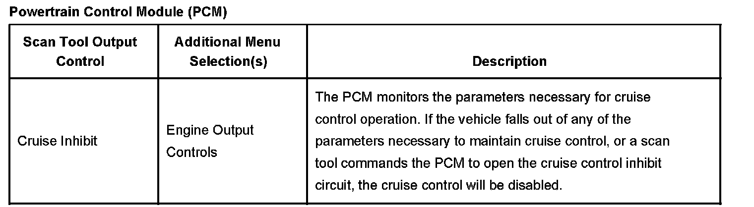 Scan Tool Output Controls - Powertrain Control Module (PCM)
