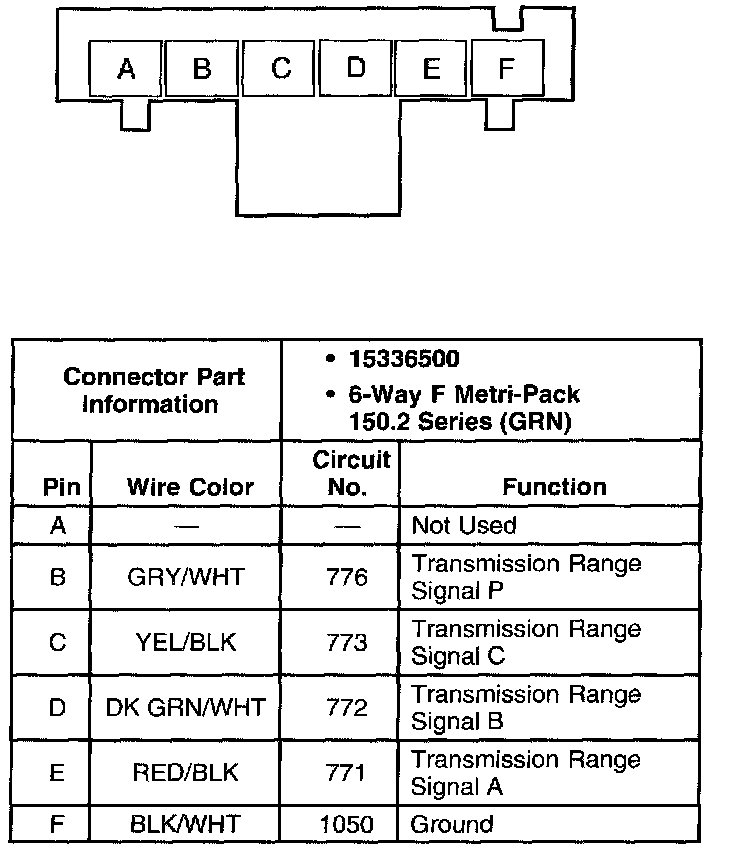 Transmission Internal Mode Switch Connector, Wiring Harness Side: