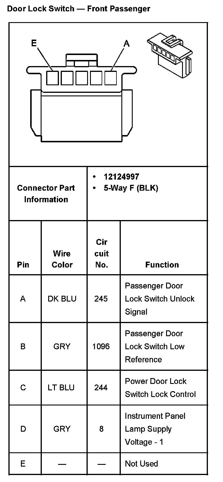 Door Lock Switch-Front Passenger: