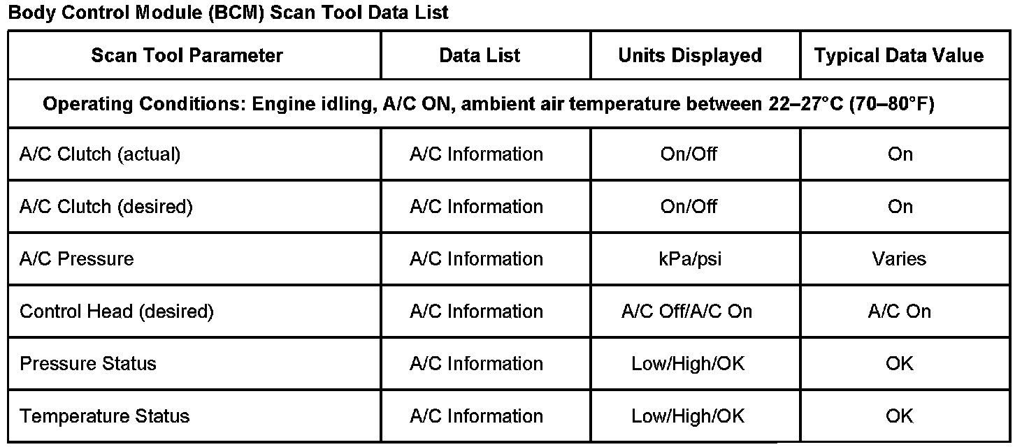 SCAN TOOL DATA LISTBody Control Module(BCM) Scan Tool Data List: