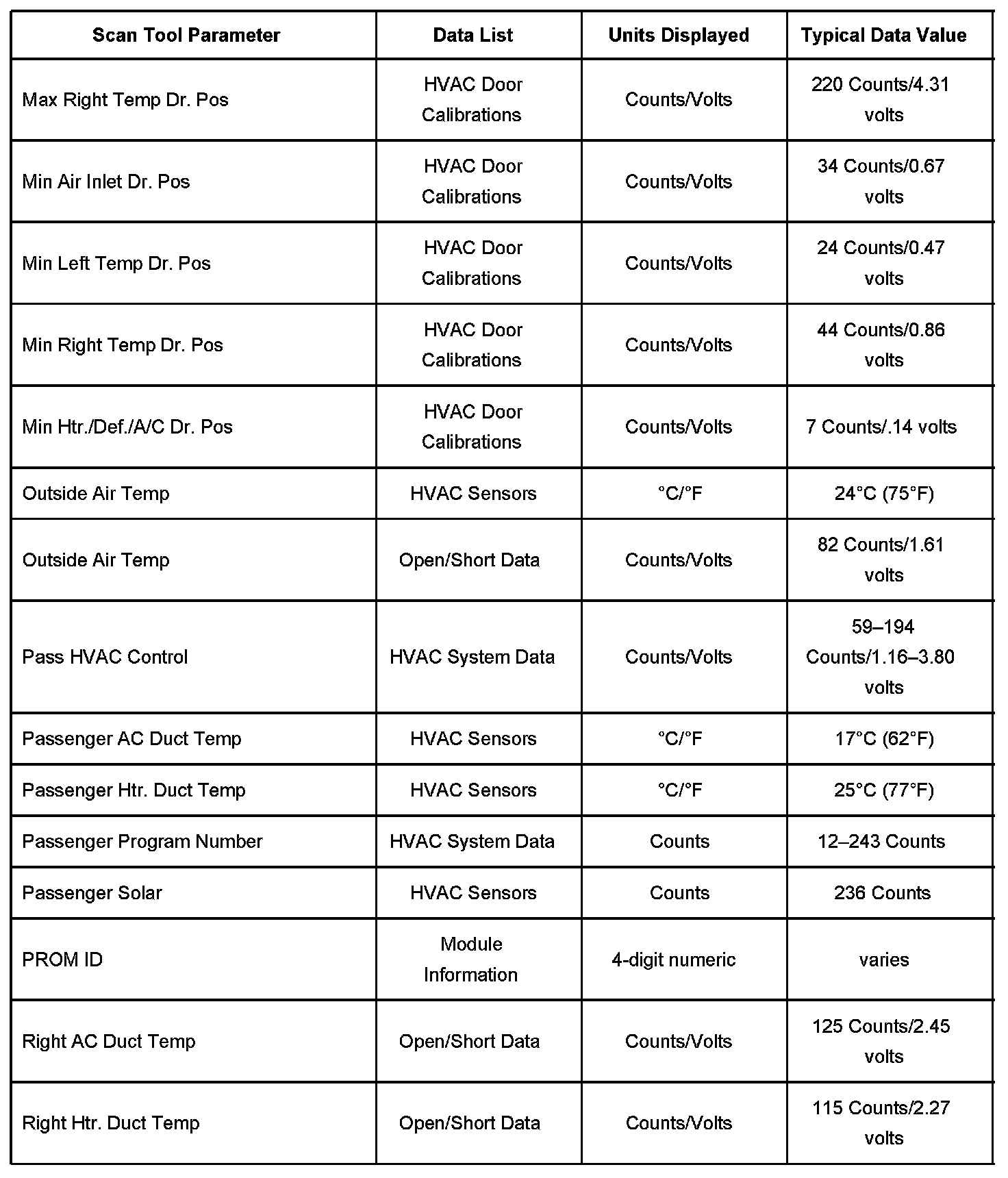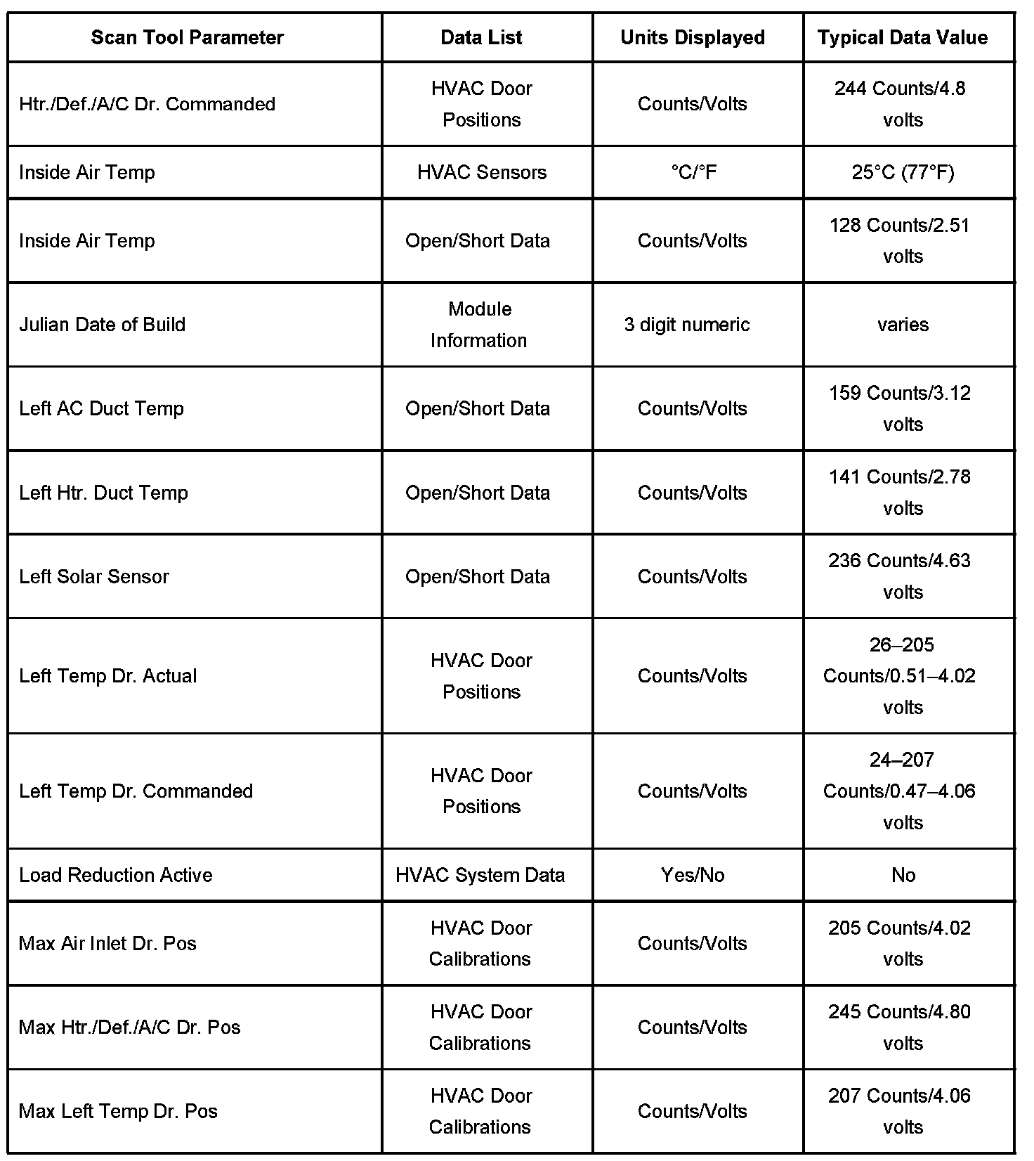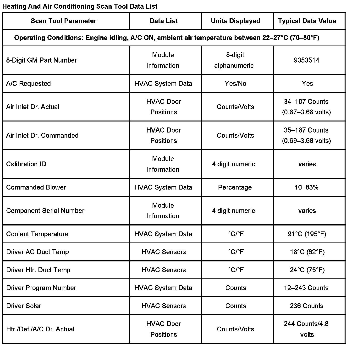 Heating And Air Conditioning Scan Tool Data List Part 1: