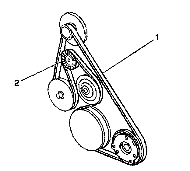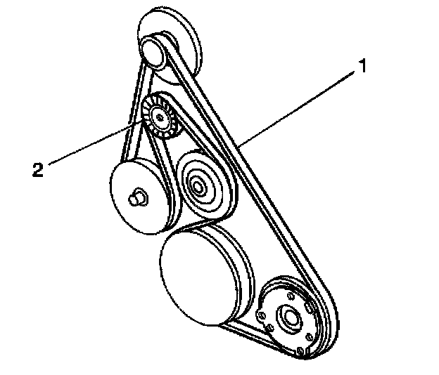 1. Rotate the tensioner (2) counterclockwise to remove the drive belt (1).
