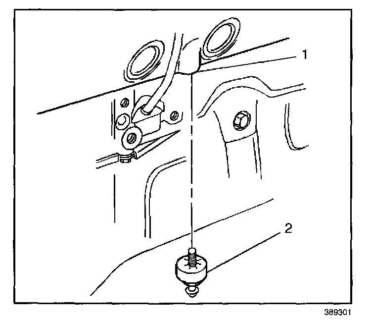 1. Install the knock sensor (2) into the engine block (1).