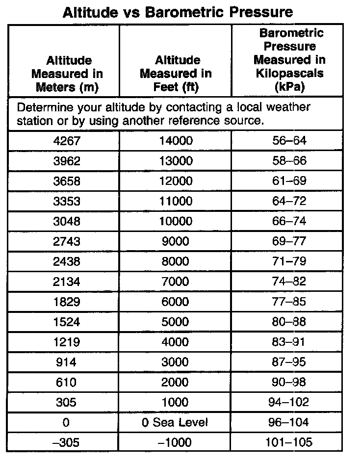 Altitude Vs Barometric Pressure:
