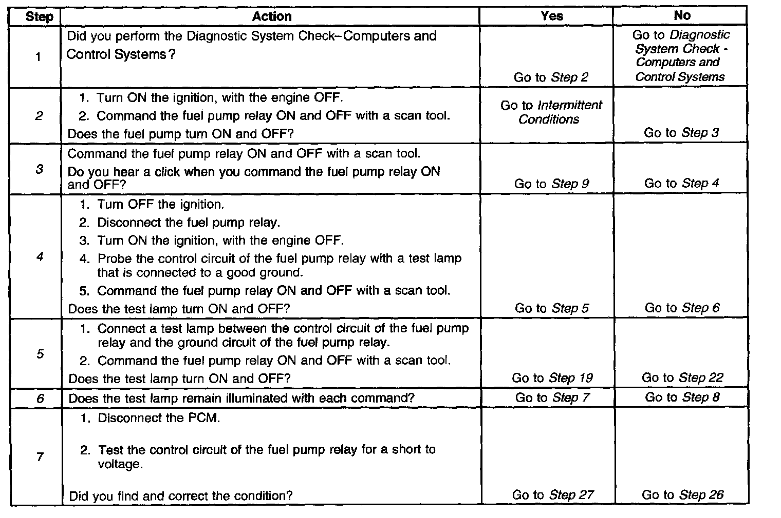 6. This step determines if a voltage is constantly being applied to the fuel pump relay.