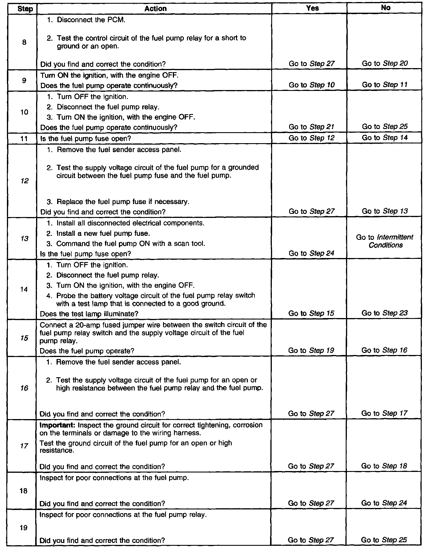 13. This step determines if the condition with the circuit is intermittent. If the fuse does not open, inspect the supply voltage circuit between the fuse and the fuel pump for an intermittent condition.