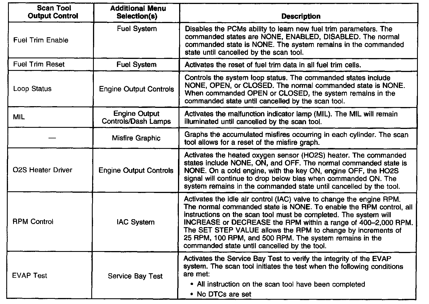 Scan Tool Output Controls