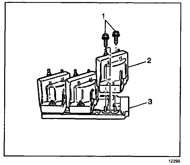 2. Remove the screws (1) securing the coil(s) to the ignition control module.