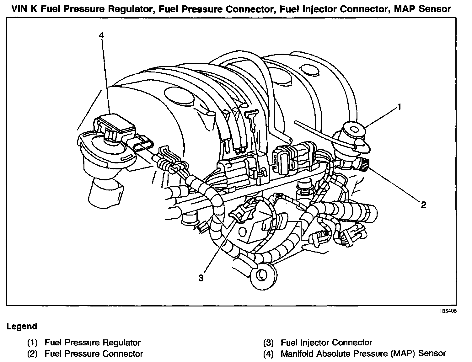 Fuel Pressure Regulator, Fuel Pressure Connector, Fuel Injector Connector, MAP Sensor: