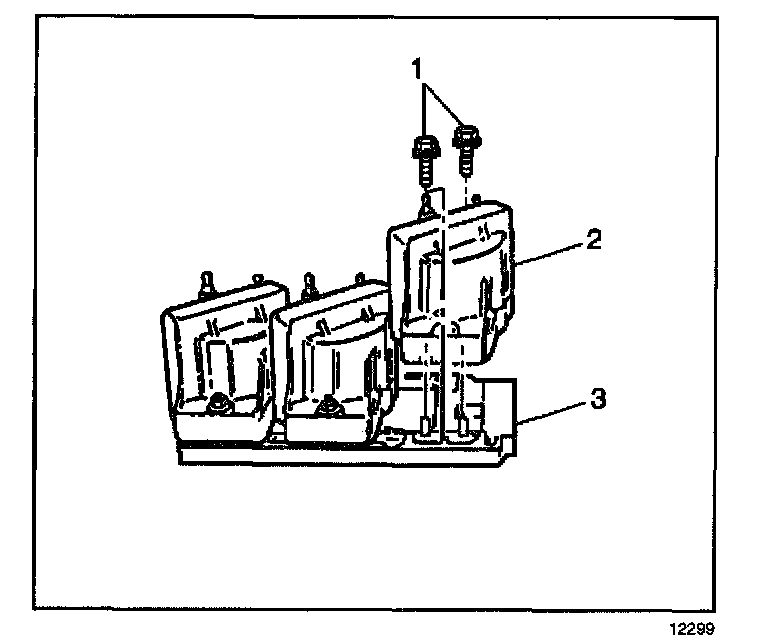 5. Remove the coils (2) and the ICM (3) from the bracket.