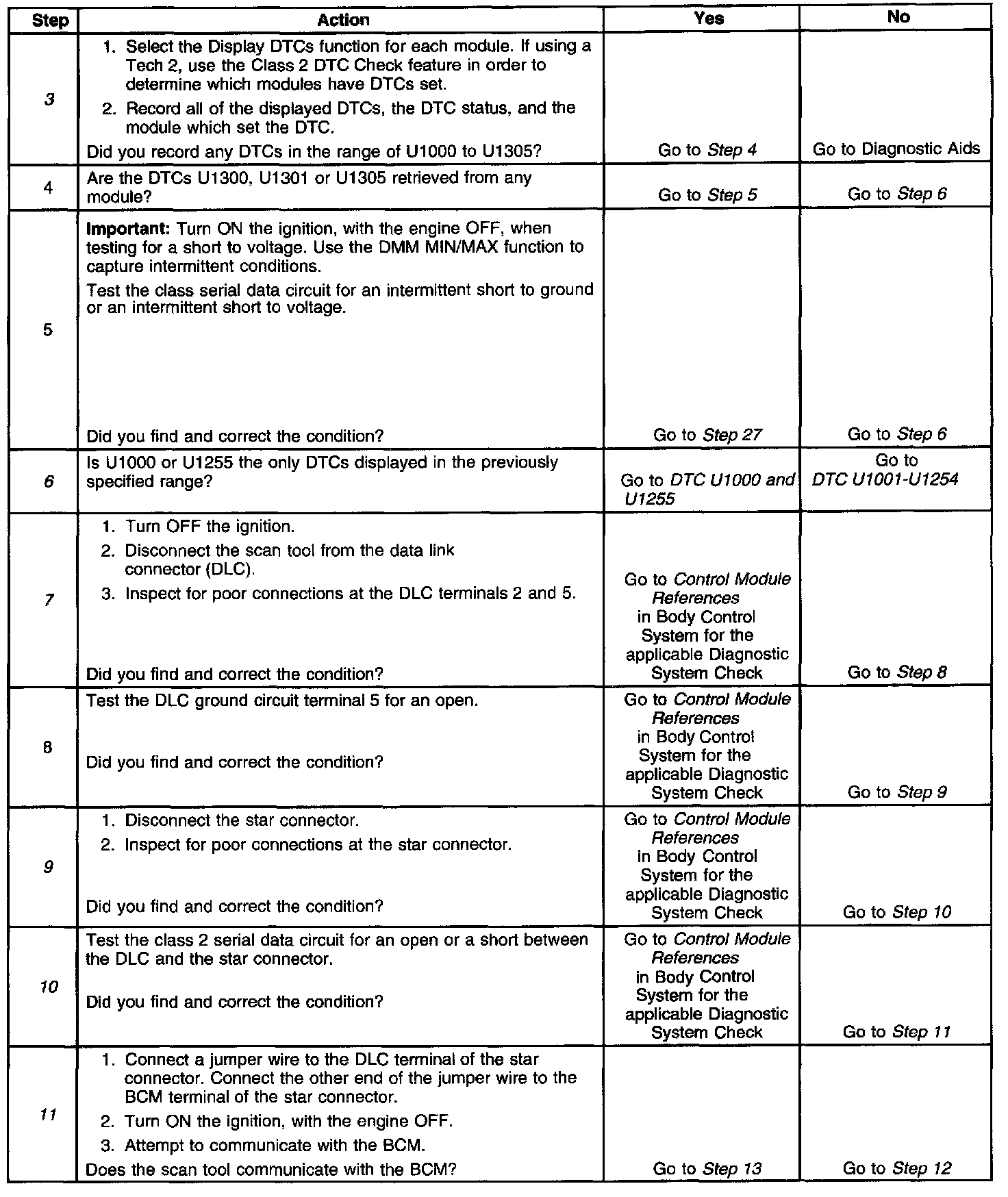 10. An open in the class 2 serial data circuit between the DLC and star connector will prevent the scan tool from communicating with any module. This condition will not set a DTC.