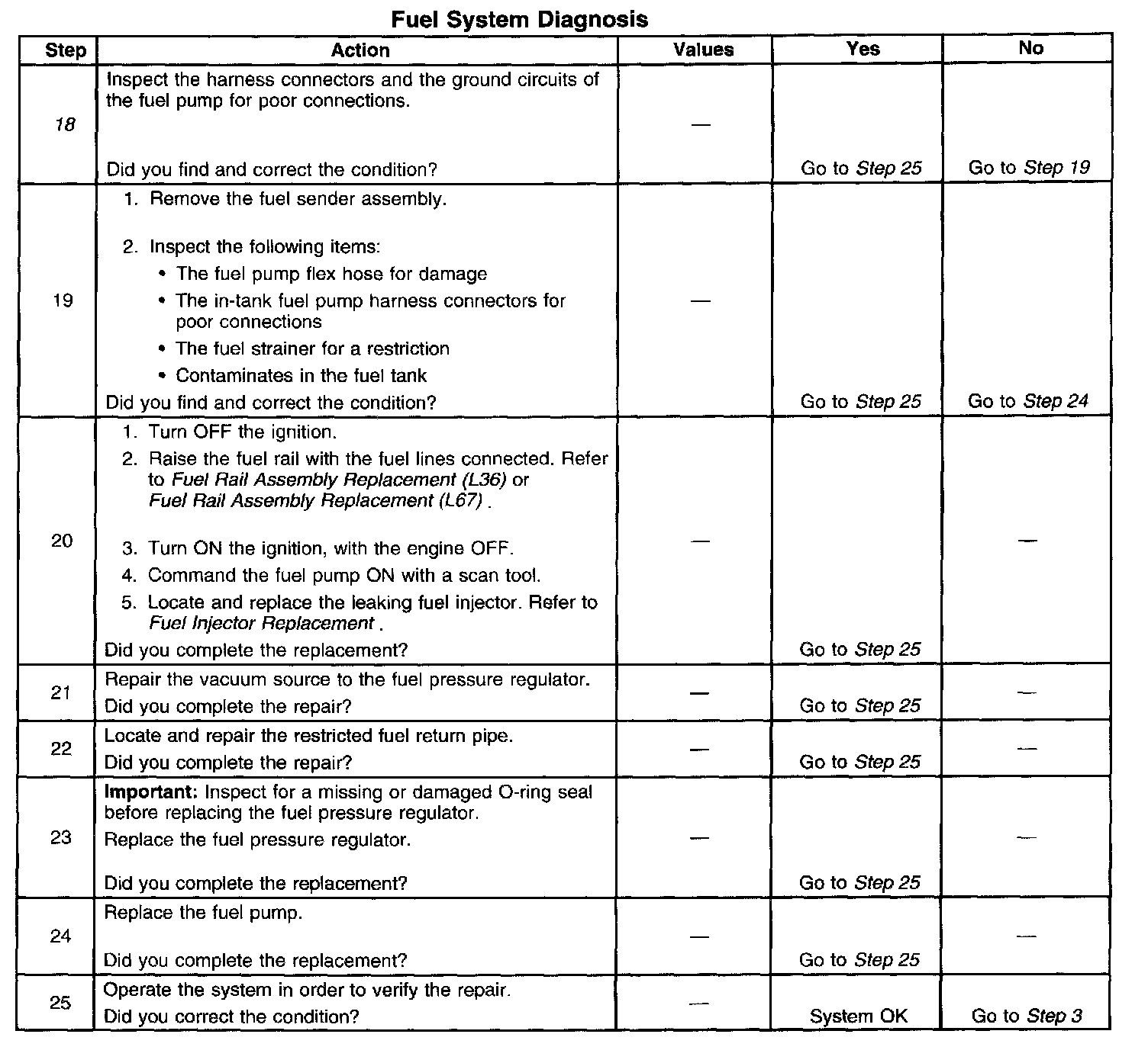 18. This step verifies that a circuit condition is not the cause of a fuel pressure concern. Inspect all fuel pump electrical circuits thoroughly.