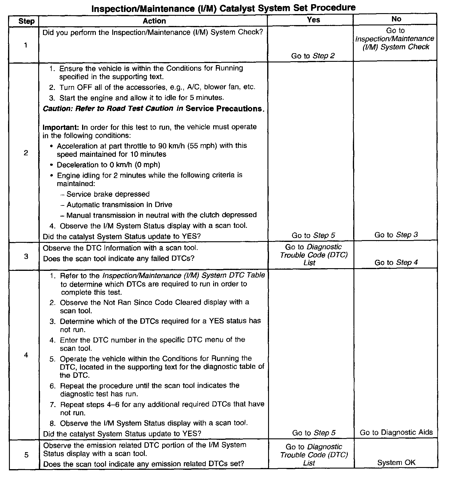 INSPECTION/MAINTENANCE (I/M) CATALYST SYSTEM SET PROCEDUREDESCRIPTION