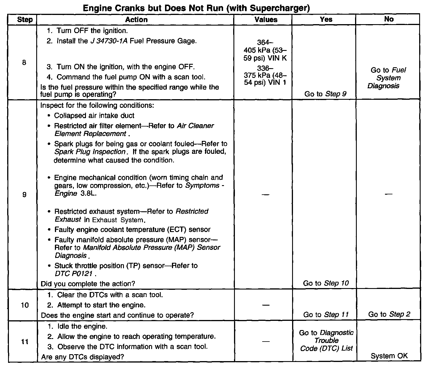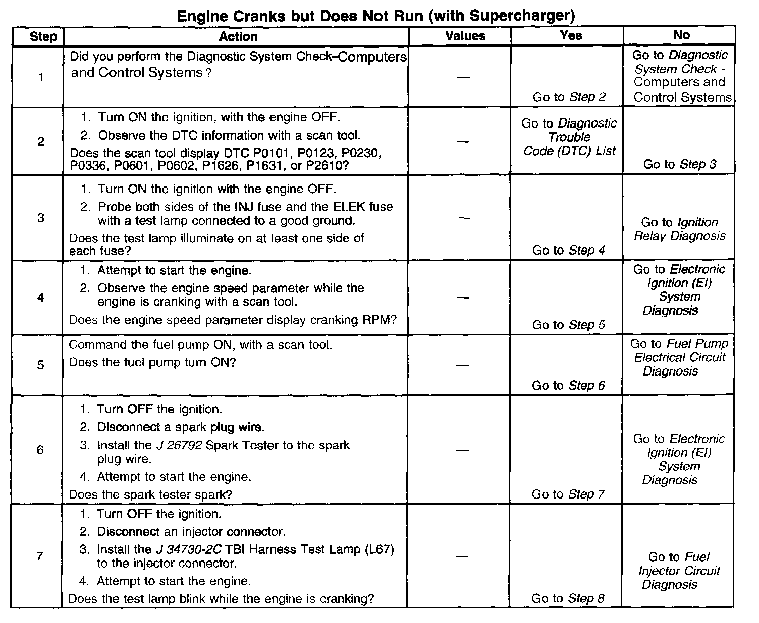 The Engine Cranks But Does Not Run diagnostic table assumes the following:
