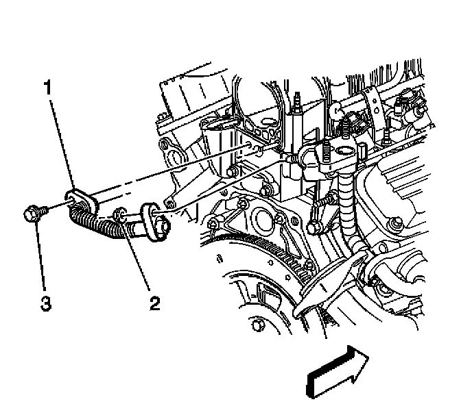 2. Remove the exhaust gas recirculation (EGR) outlet pipe bolt (3) from the intake manifold.