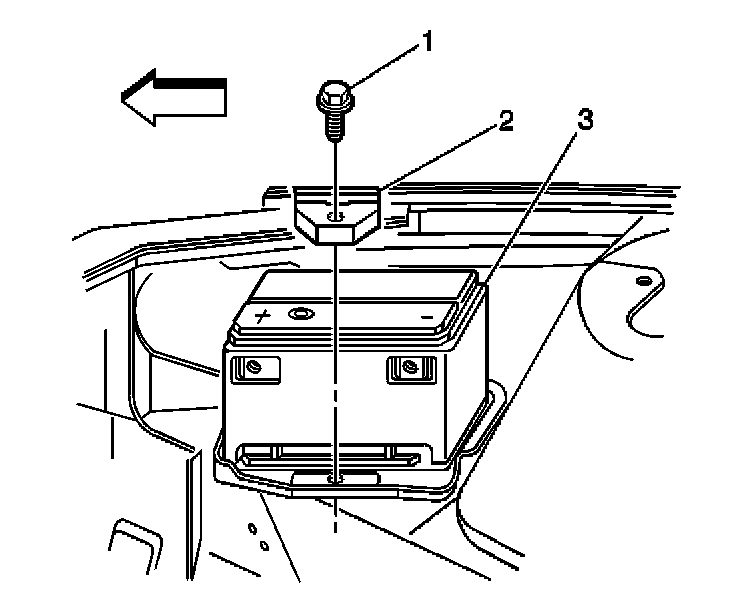 4. Remove the retainer bolt (1) that holds the battery in place.