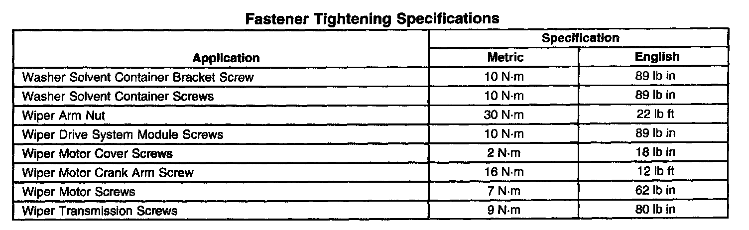 Wiper and Washer Systems: Specifications