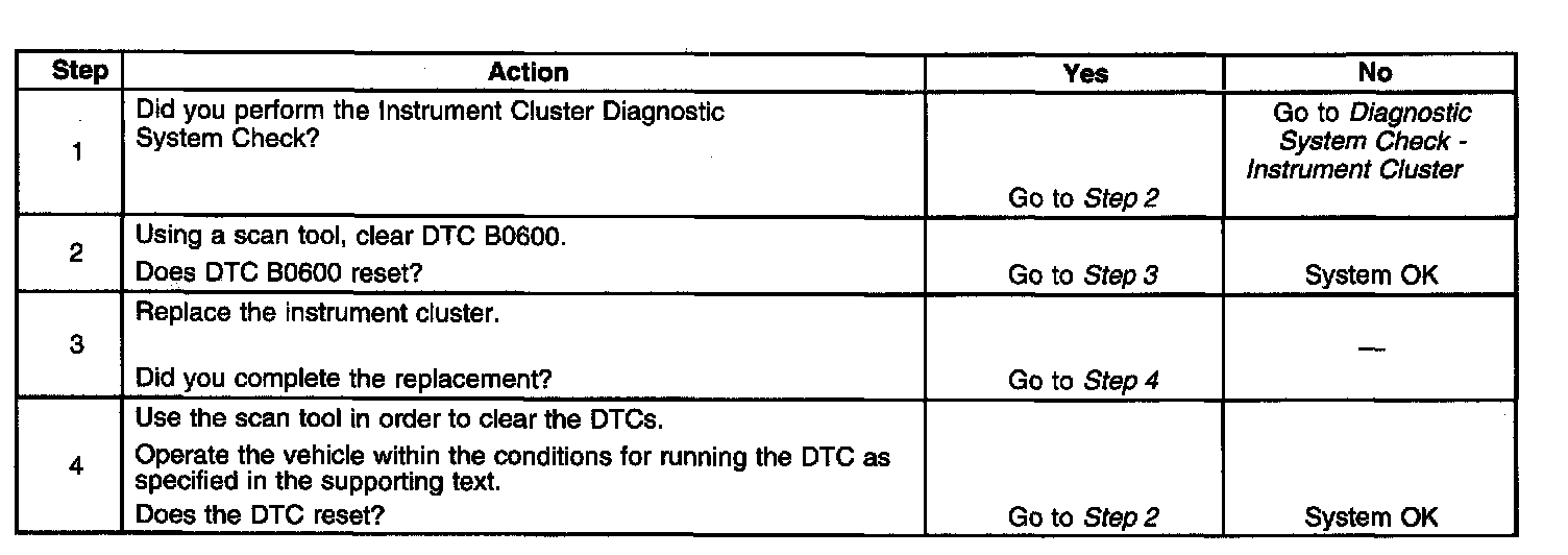 - The instrument cluster stores DTC B0600 in memory.