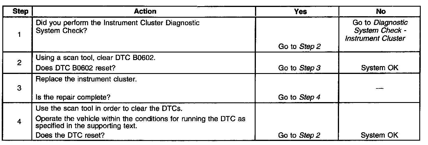 - The system stores a DTC B0602 in the instrument cluster memory.