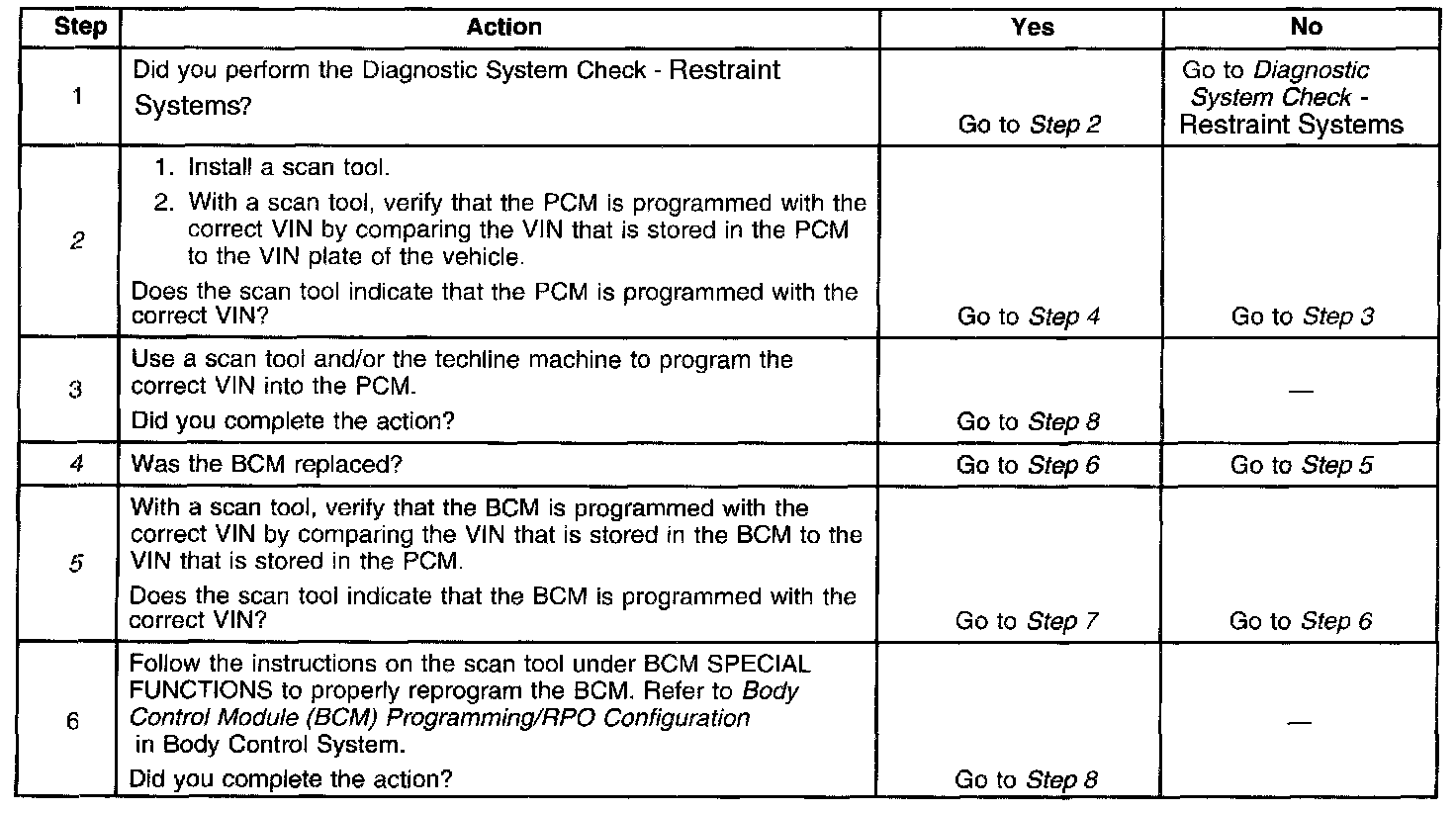 The restraints ID that is stored in the SDM matches the restraints ID that is stored in the BCM and the VIN information that is stored in the SDM matches the VIN information that is stored in the BCM.