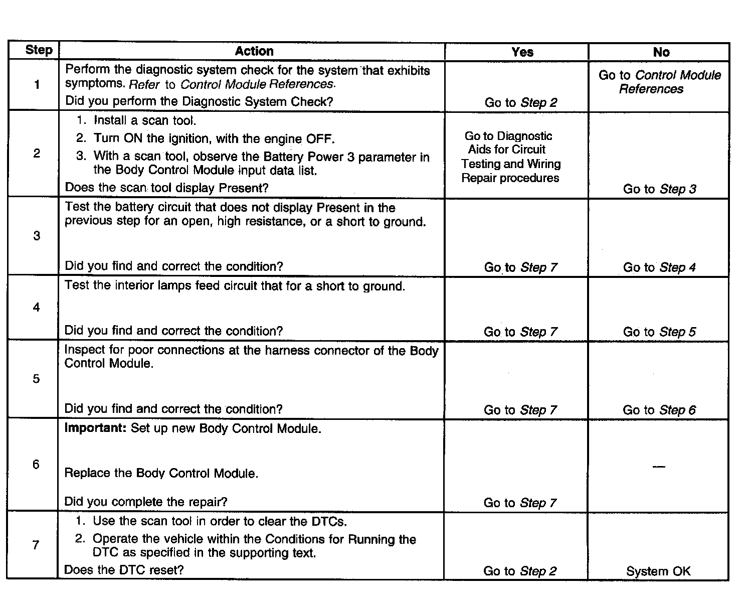 The voltage on the interior lamps feed circuit from the BCM must be between 9-16 volts.