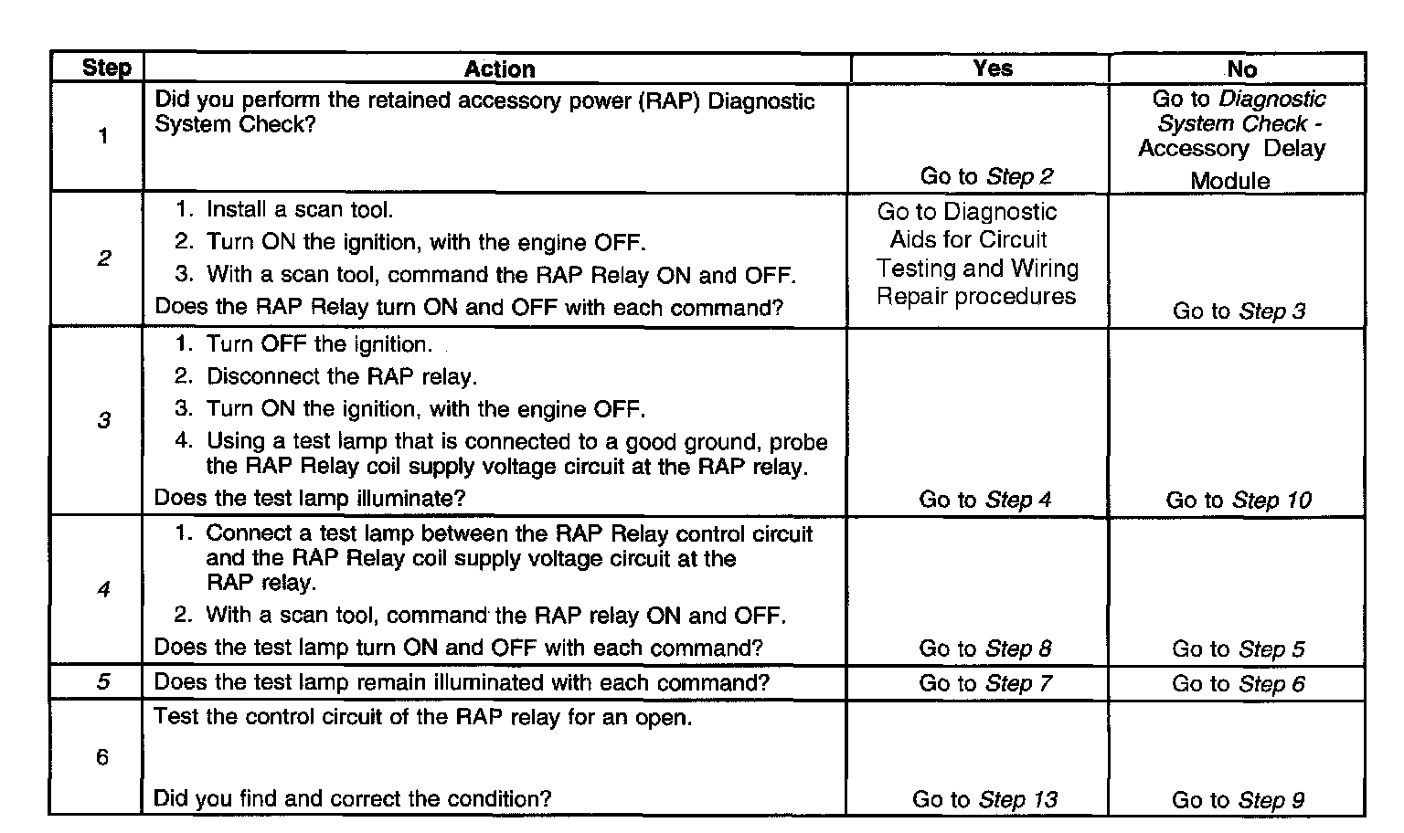 5. This step tests if ground is constantly being applied to the RAP relay.
