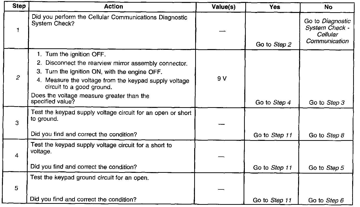 - The keypad signal circuit voltage to the VCIM is less than 2.8 volts or more than 3.2 volts.