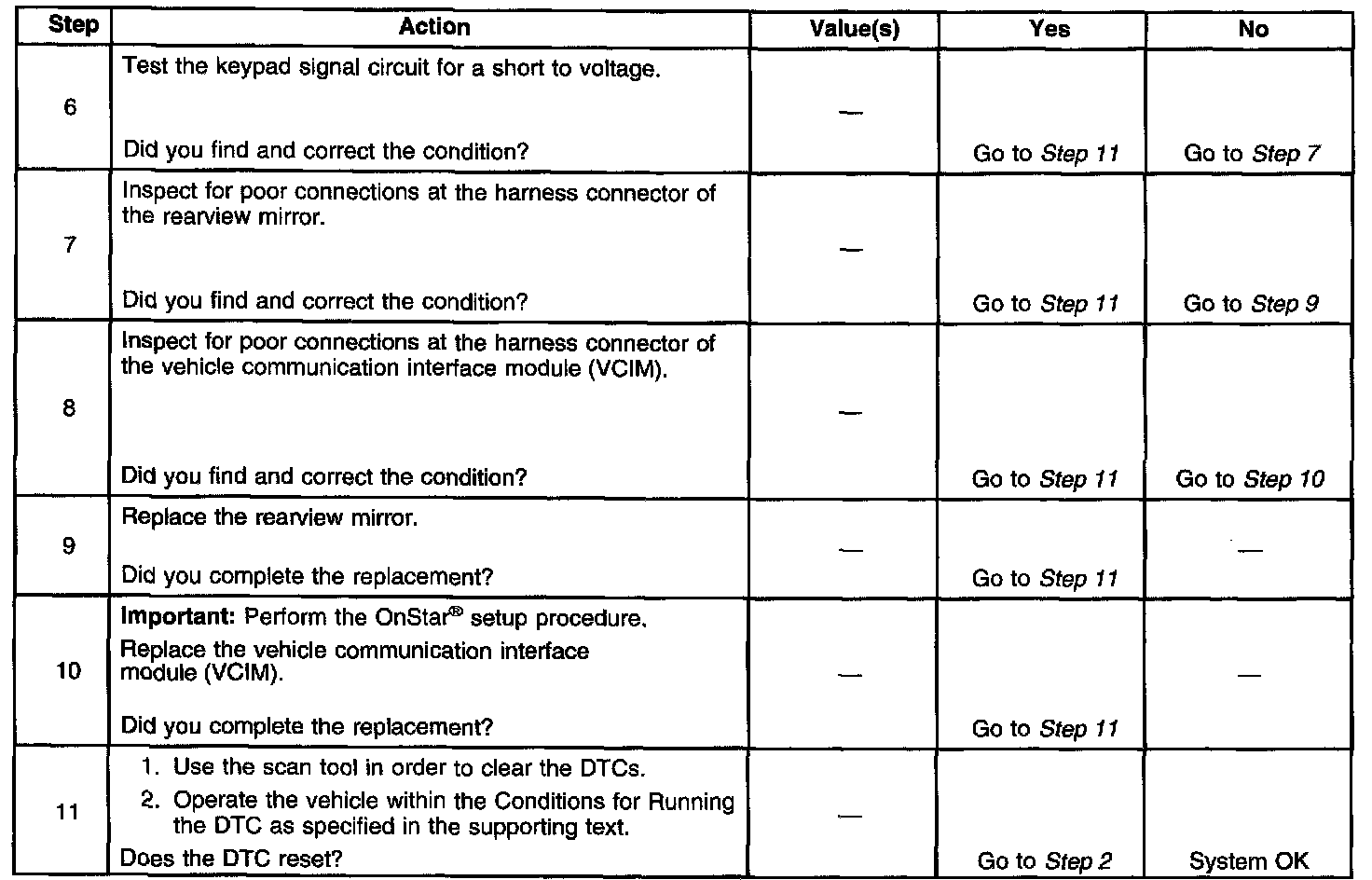 - The VCIM will ignore all inputs from the OnStar(R) button assembly.