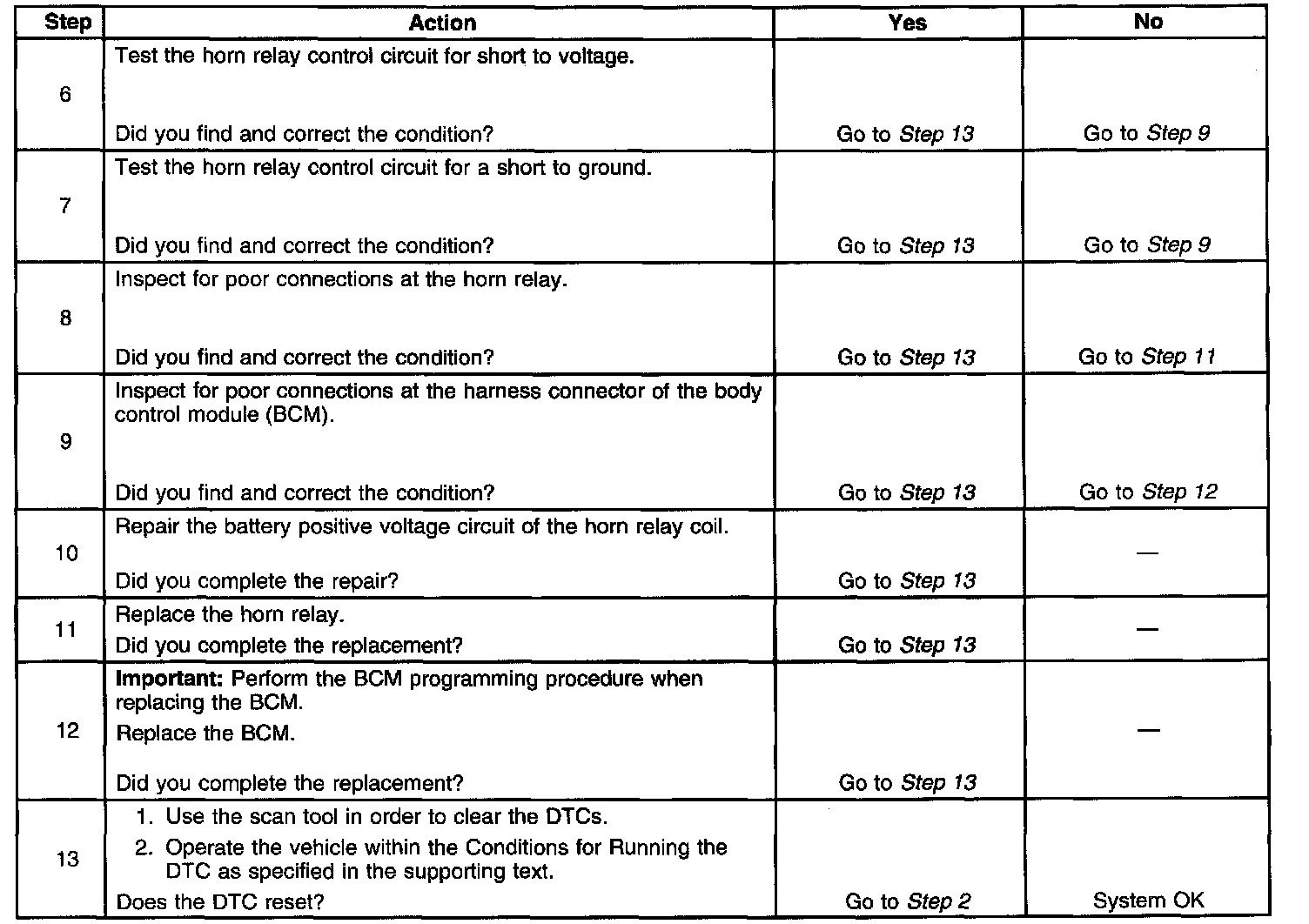 - The horns are inoperative from the BCM and the horn switch.