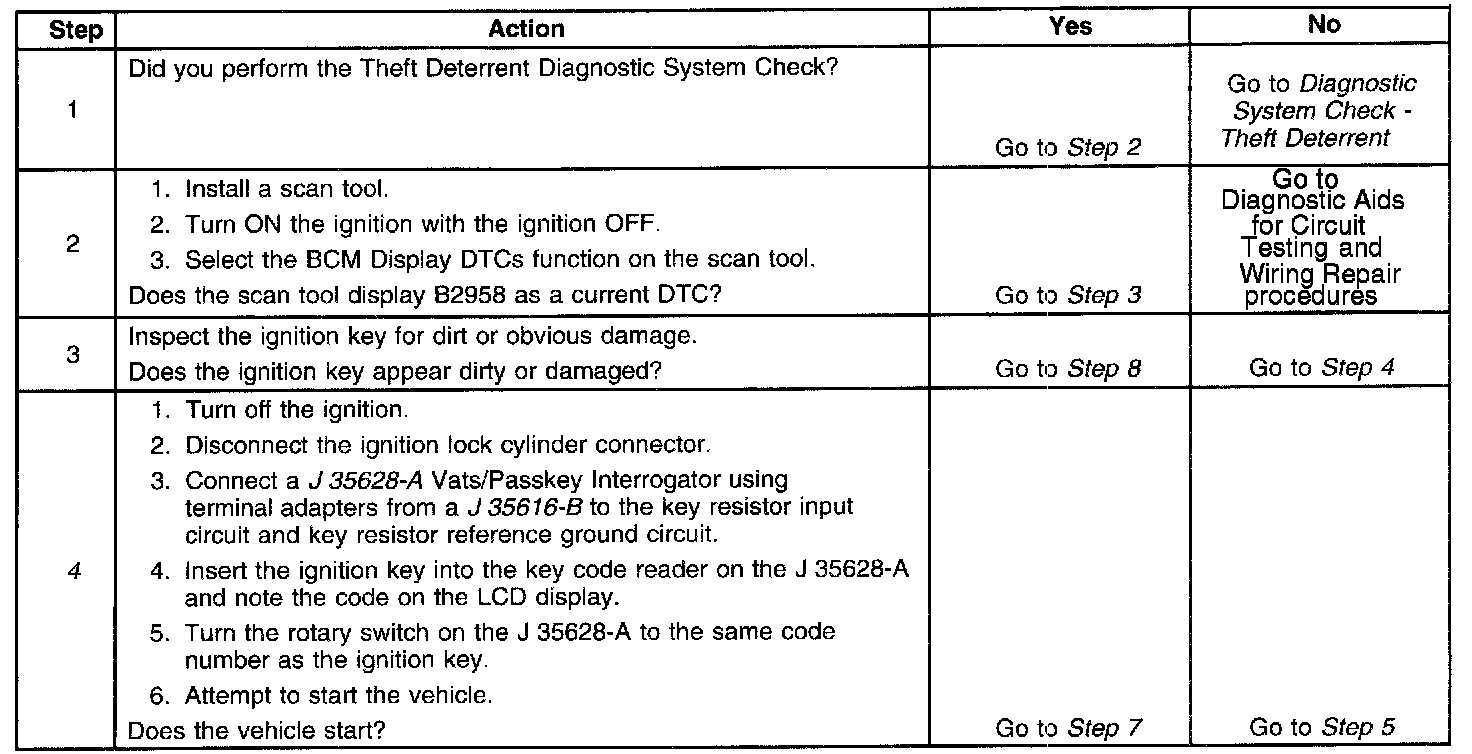 The number(s) below refer to the step number(s) on the diagnostic table.