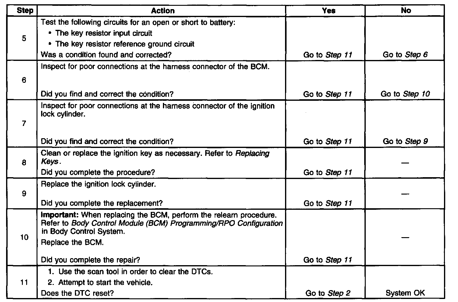 4. This test verifies the integrity of the key resistor circuits between the ignition switch and the BCM.