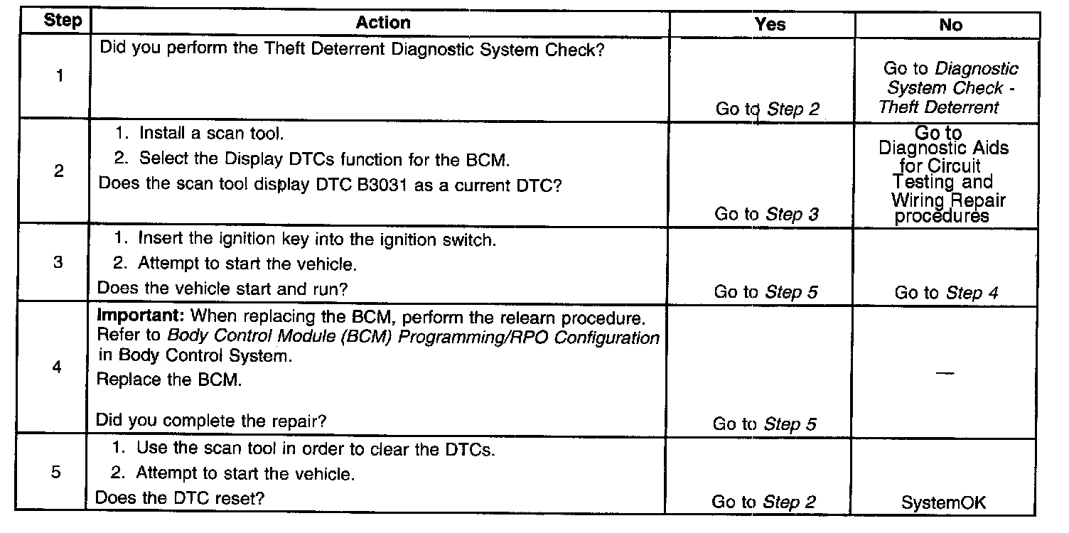 - If any other theft deterrent DTCs are also set current, diagnose that DTC first.
