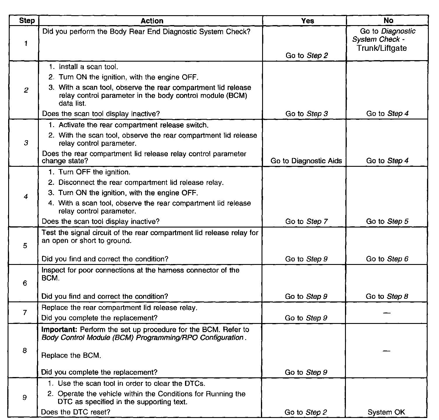 - A short to ground is no longer detected in the rear compartment lid release relay control circuit.