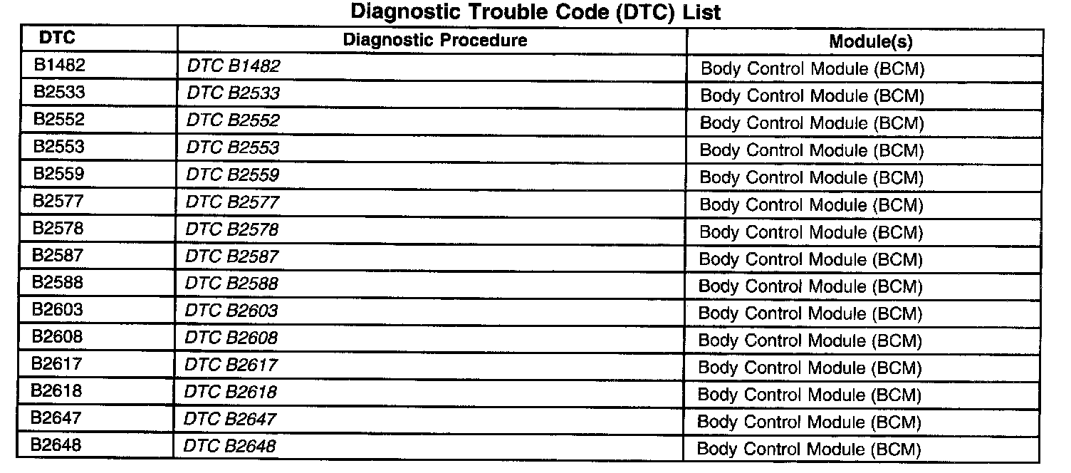 DTCs B1482 - B2648: