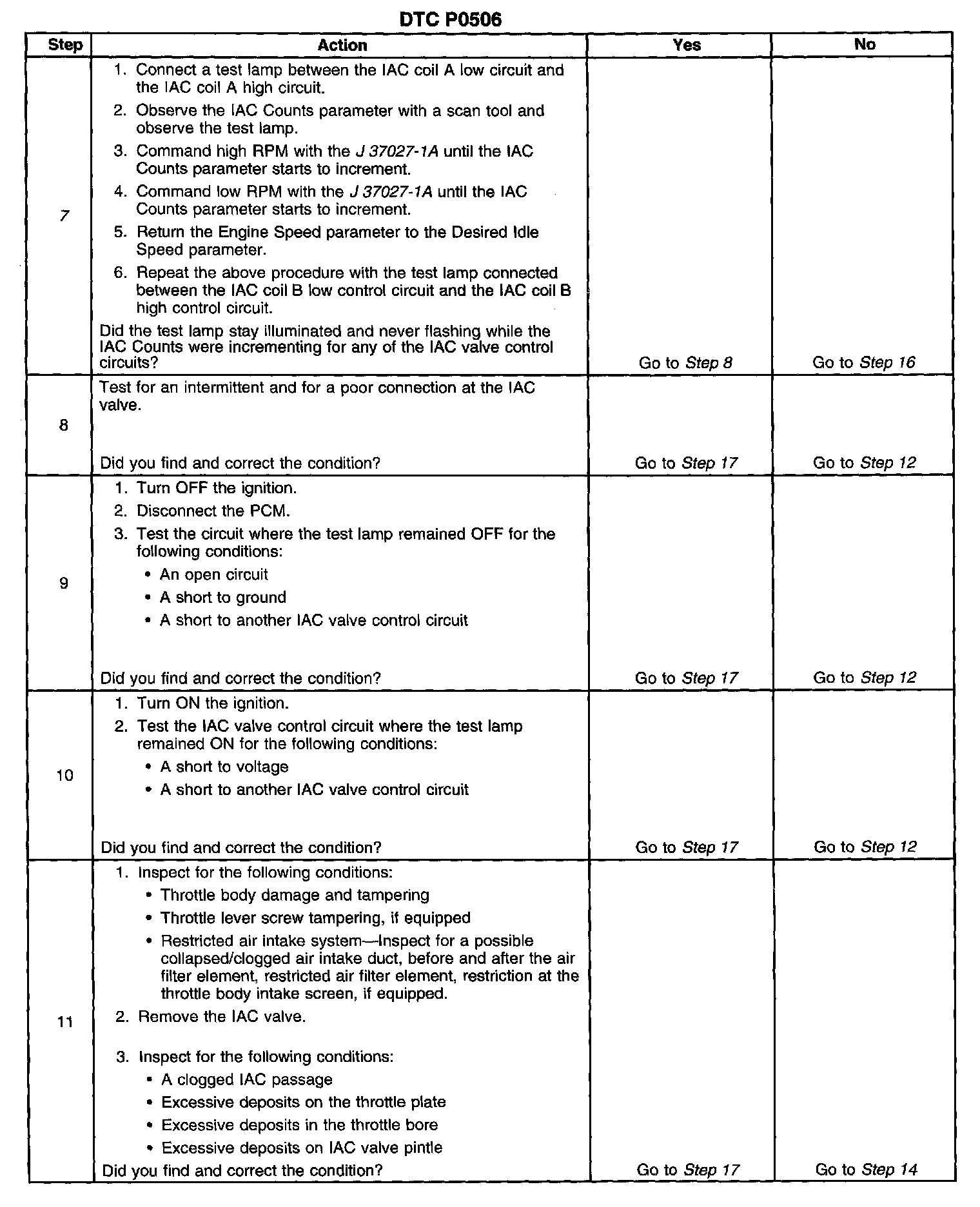 7. This test will determine the ability of the PCM to provide the IAC valve control circuits with a ground. On a normal operating system, the test lamp should not flash while the IAC Counts are incrementing.