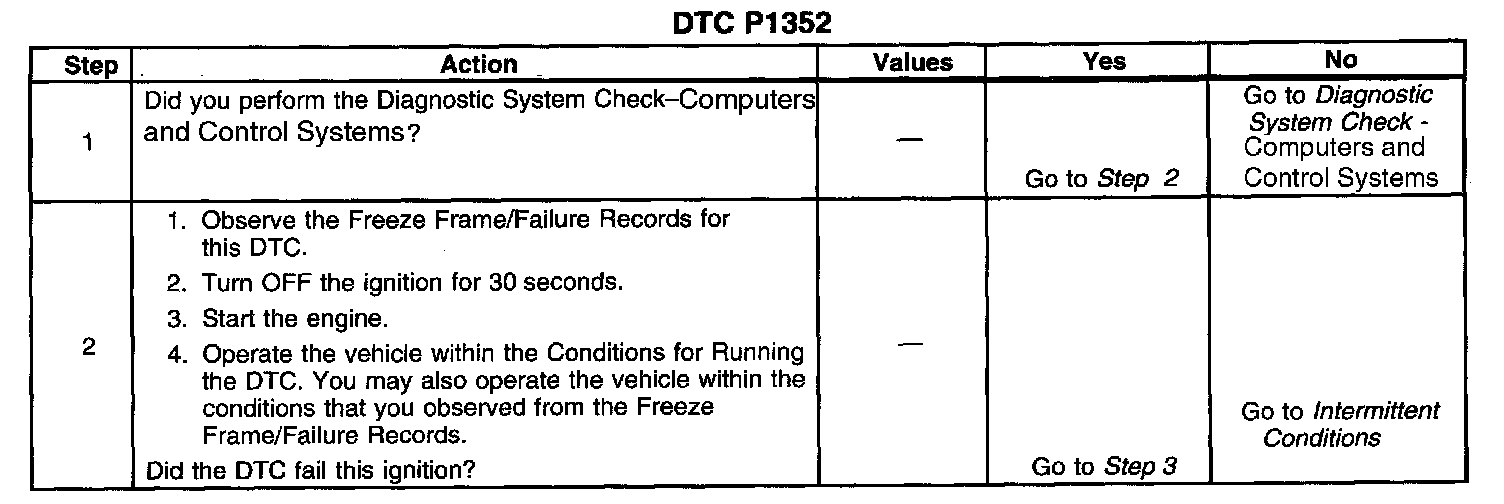 If the PCM detects an open in the IC timing signal circuit, DTC P1352 sets.