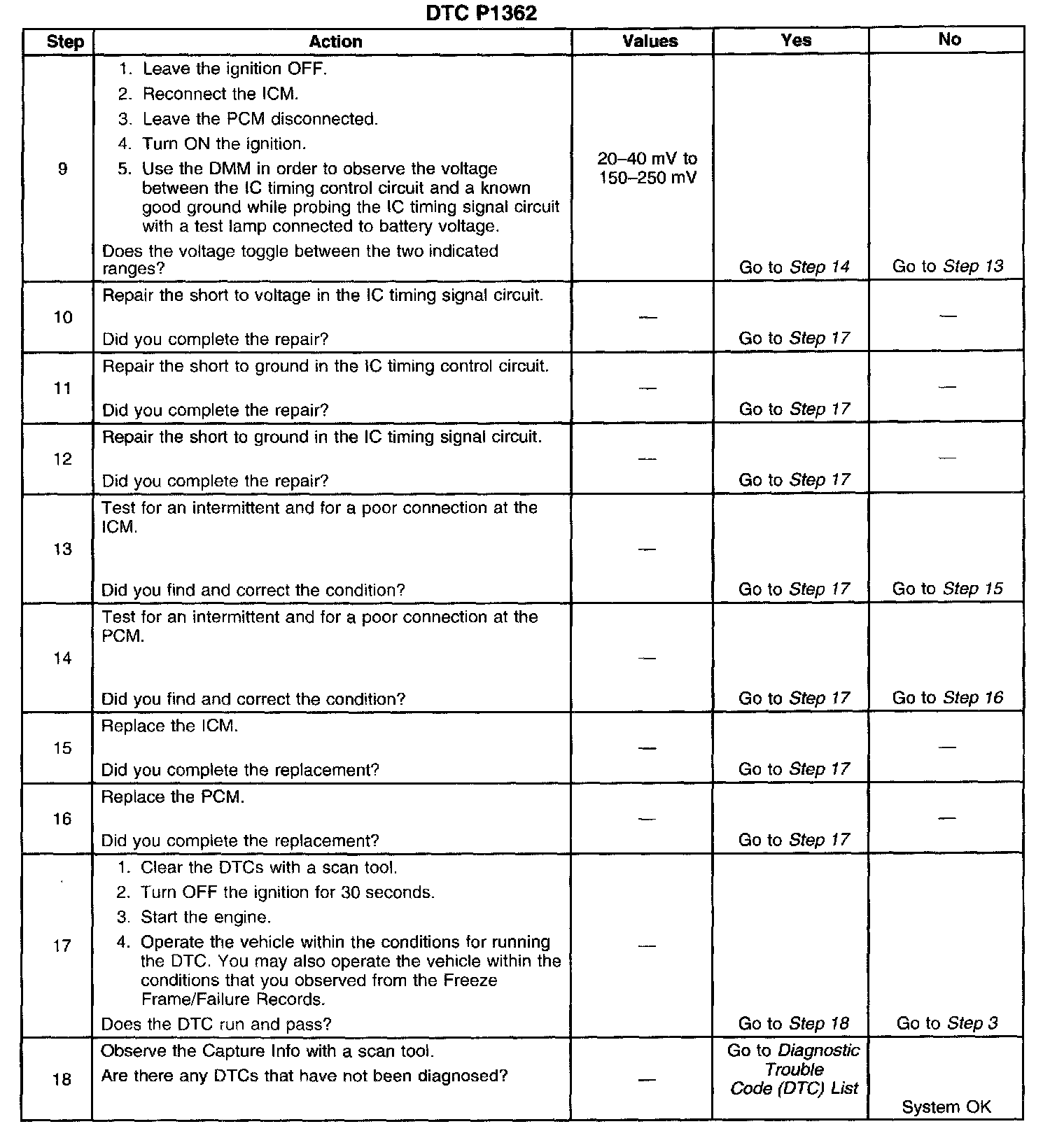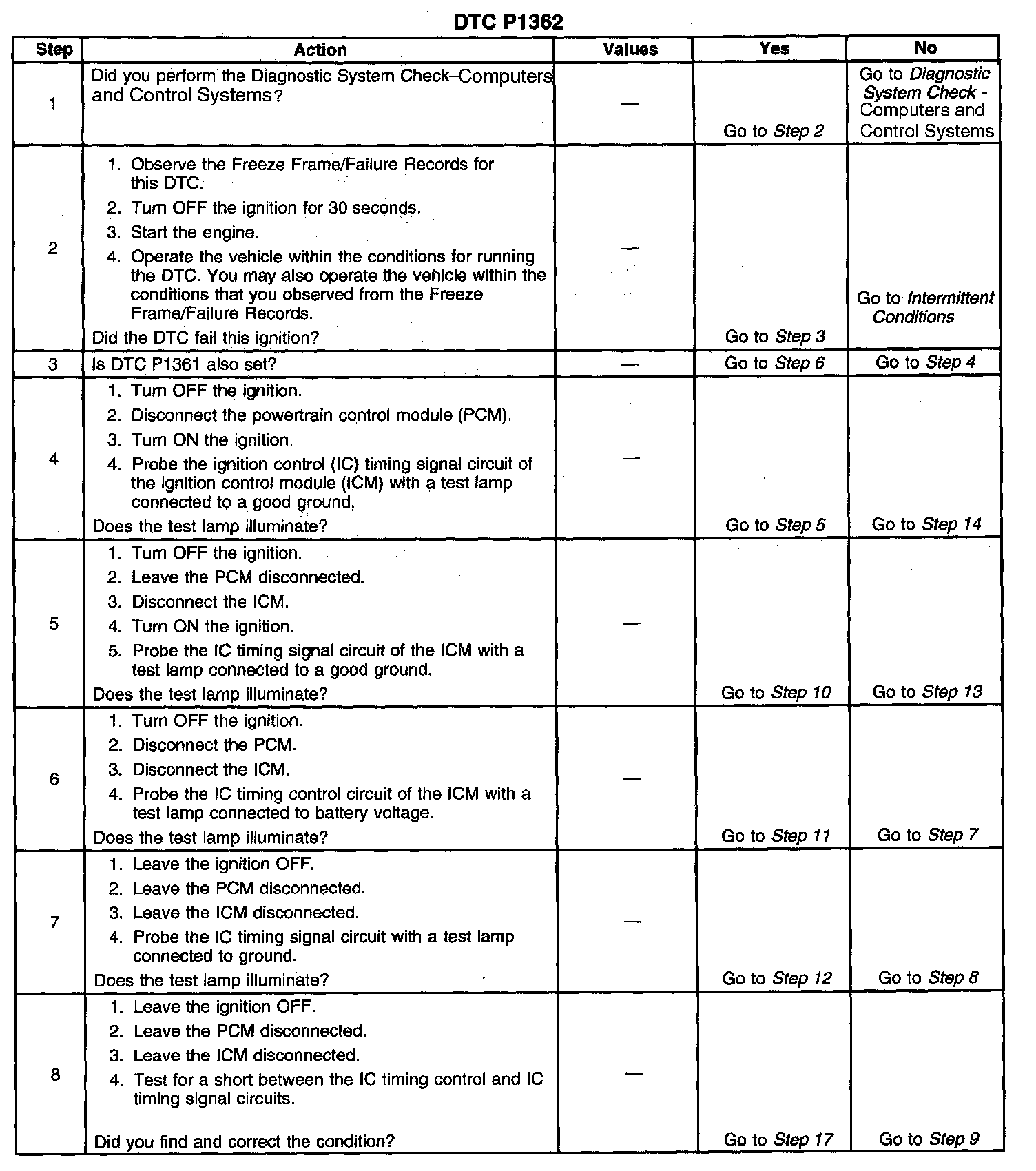 If the PCM detects a short to voltage in the IC timing signal circuit, DTC P1362 sets.