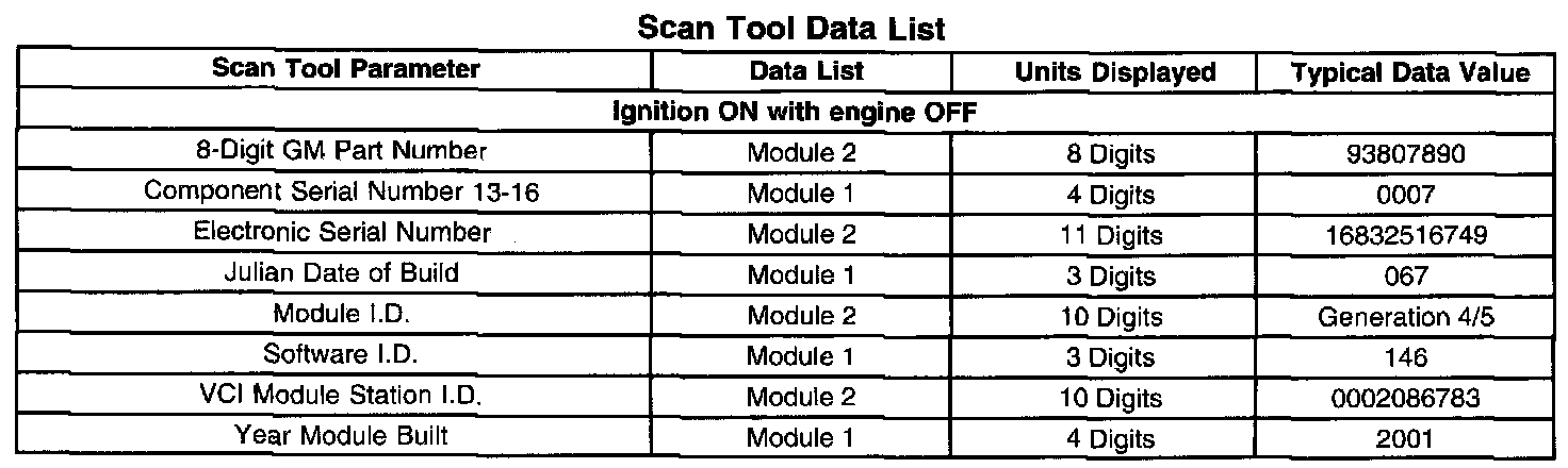Scan Tool Data List: