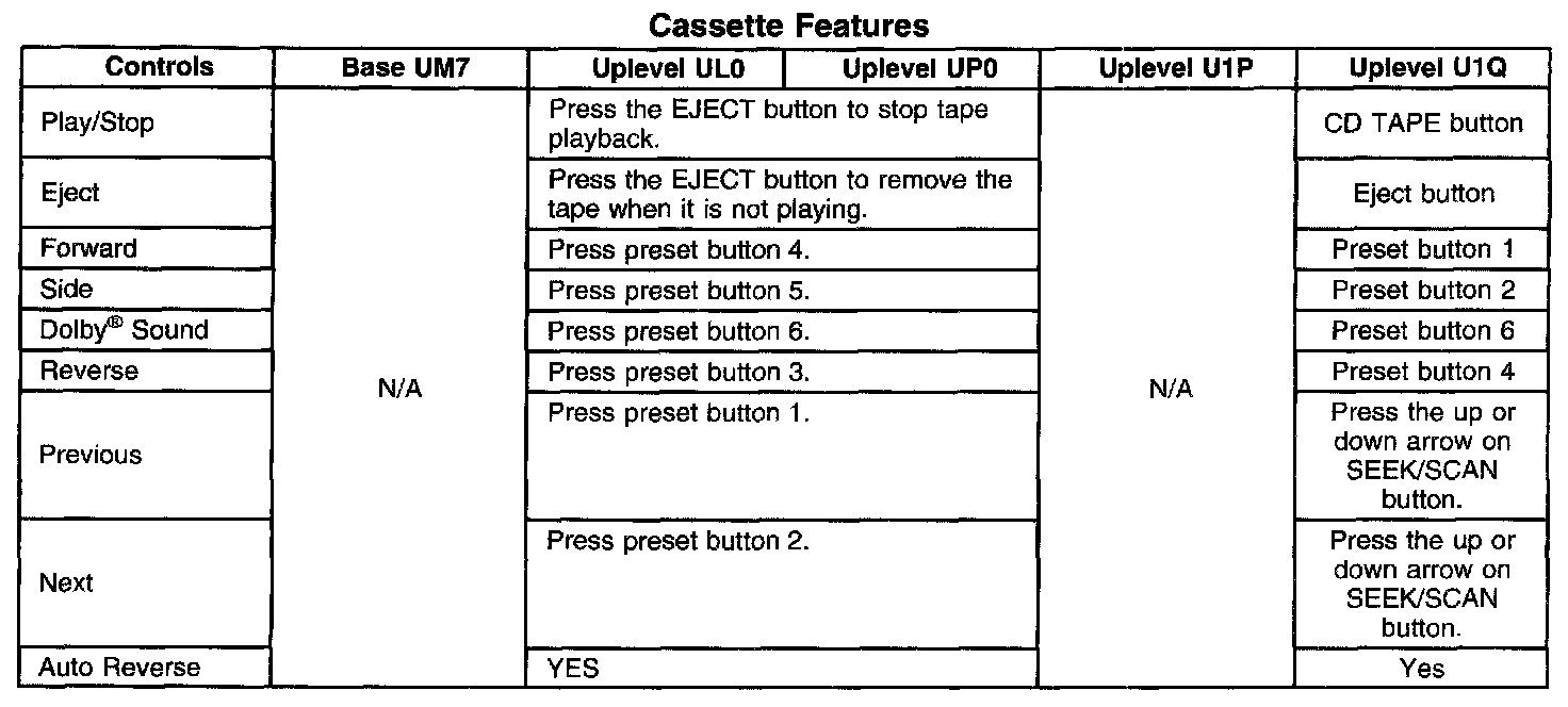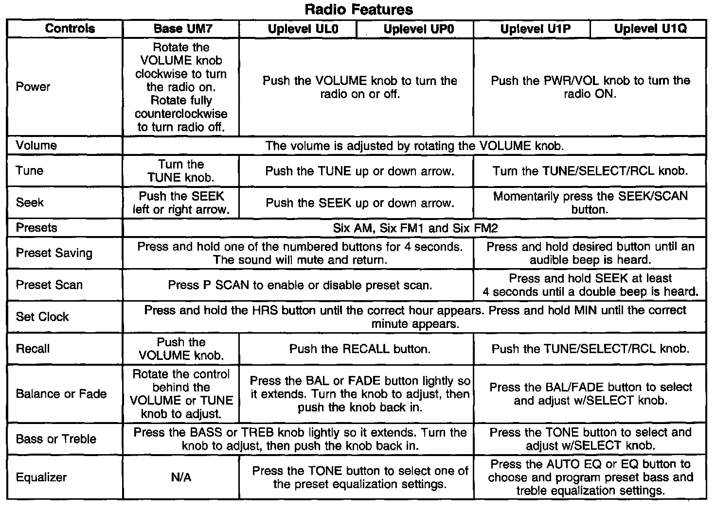 - Uplevel Radio (U1Q) - AM/FM Stereo, Cassette, CD with Programmable Equalizer, and RDS