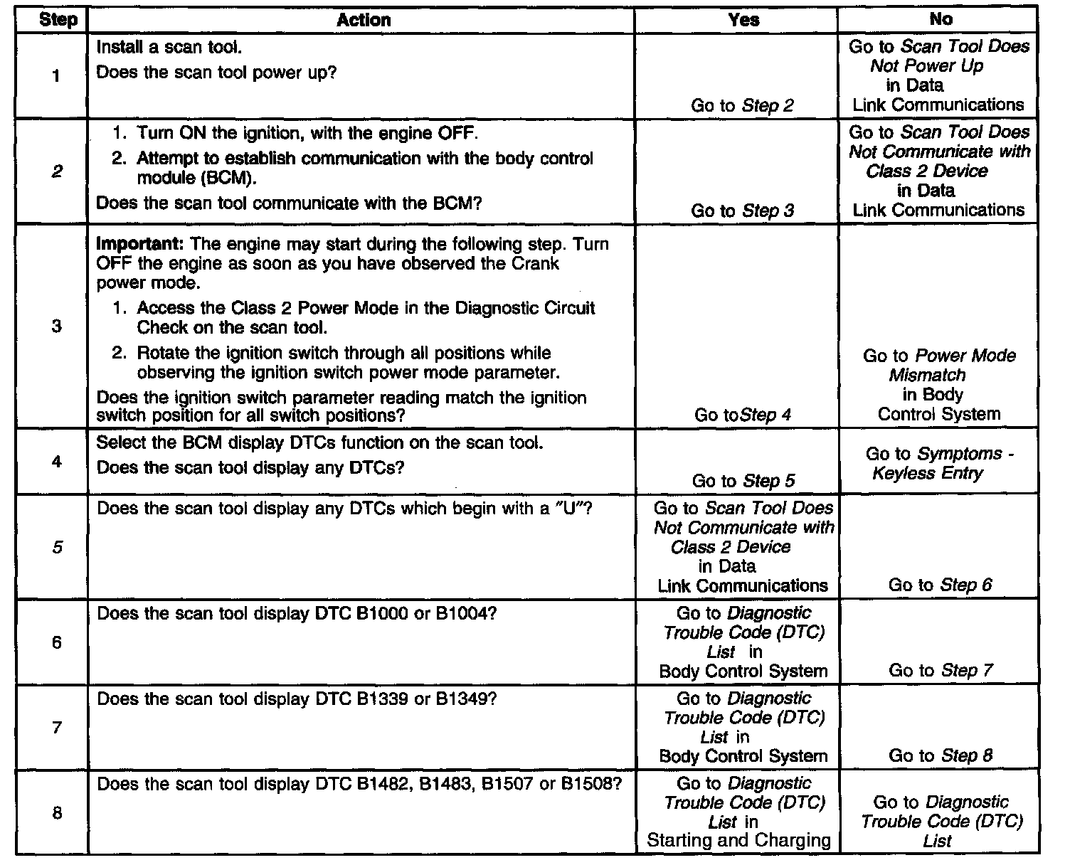 2. Lack of communication may be due to a partial malfunction of the class 2 serial data circuit or due to a total malfunction of the class 2 serial data circuit. The specified procedure will determine the particular condition.