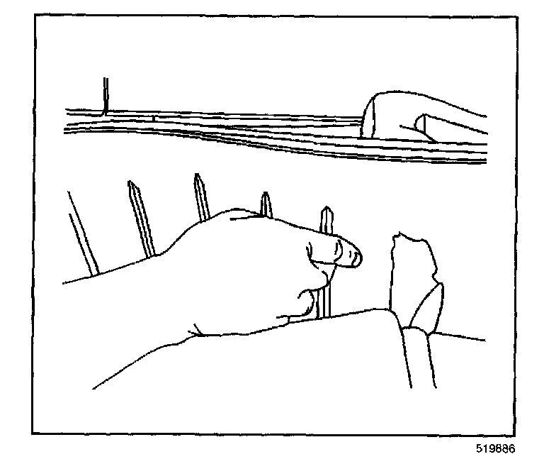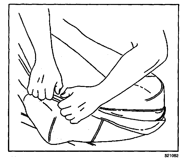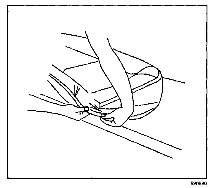 5. Use firm hand pressure in order to fasten the hook and the loop retainers, securing the rear seat back cover to the pad.