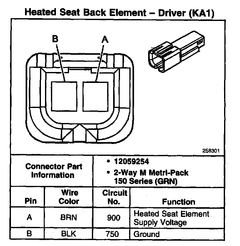 Heated Seat Back Element - Driver (With RPO Code KA1):