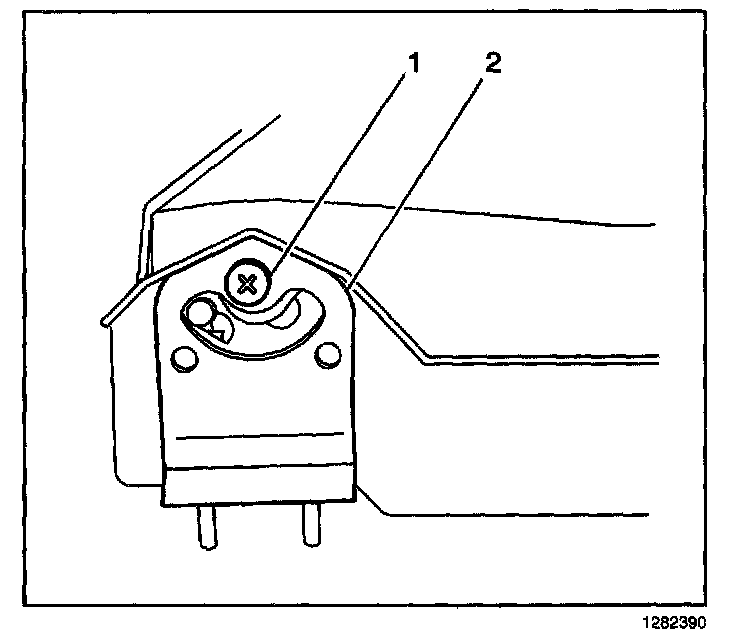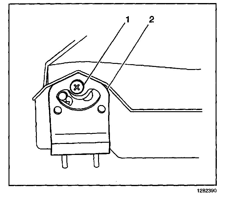 7. Remove the armrest pivot screw (1) from the bracket (2).