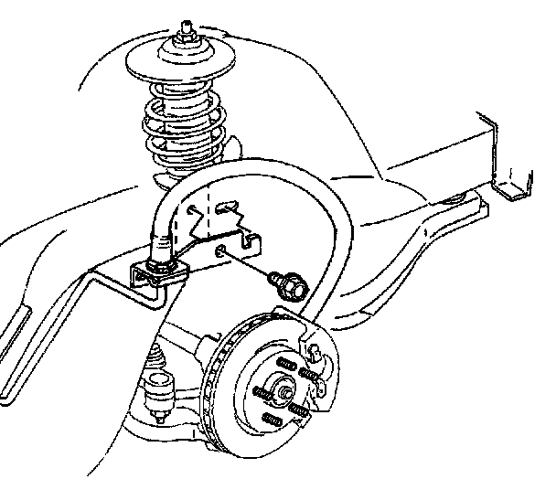 3. With the weight of the vehicle on the suspension, install the brake hose into the bracket.