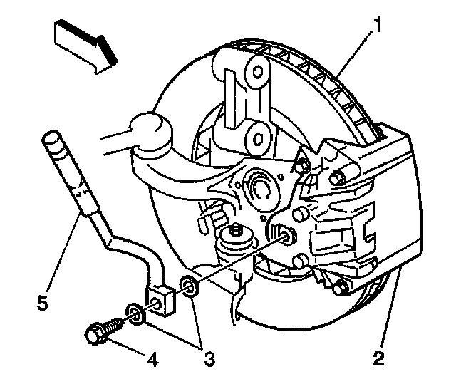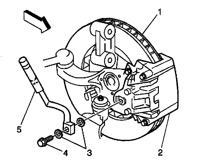8. Remove the brake hose (5) from the brake caliper (2).