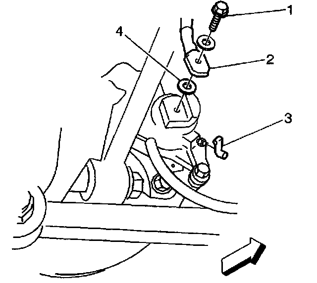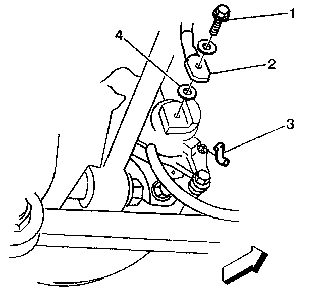 2. Install the brake hose to caliper bolt (1) to the brake caliper.