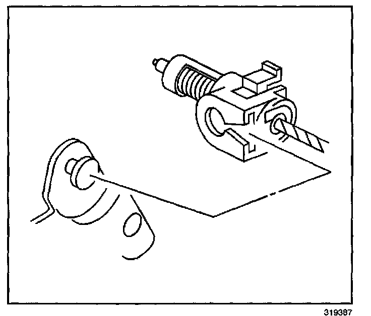 2. Install the cruise control cable to the throttle lever and the accelerator control cable bracket.