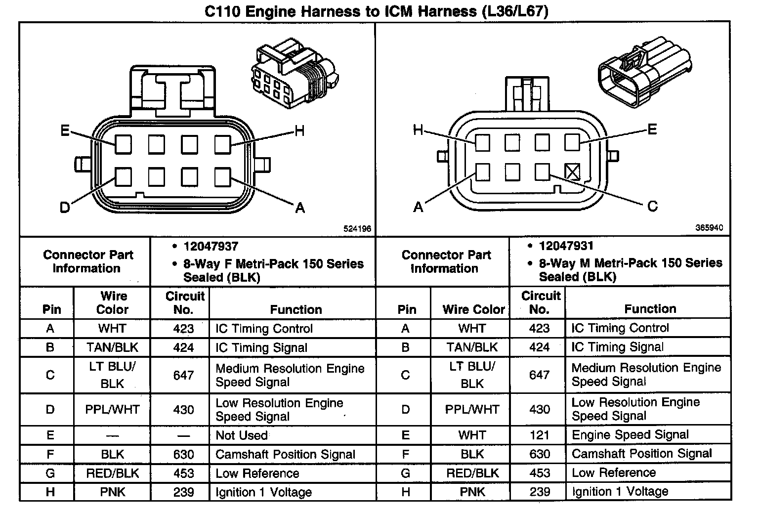 C110 Engine Harness To ICM Harness: