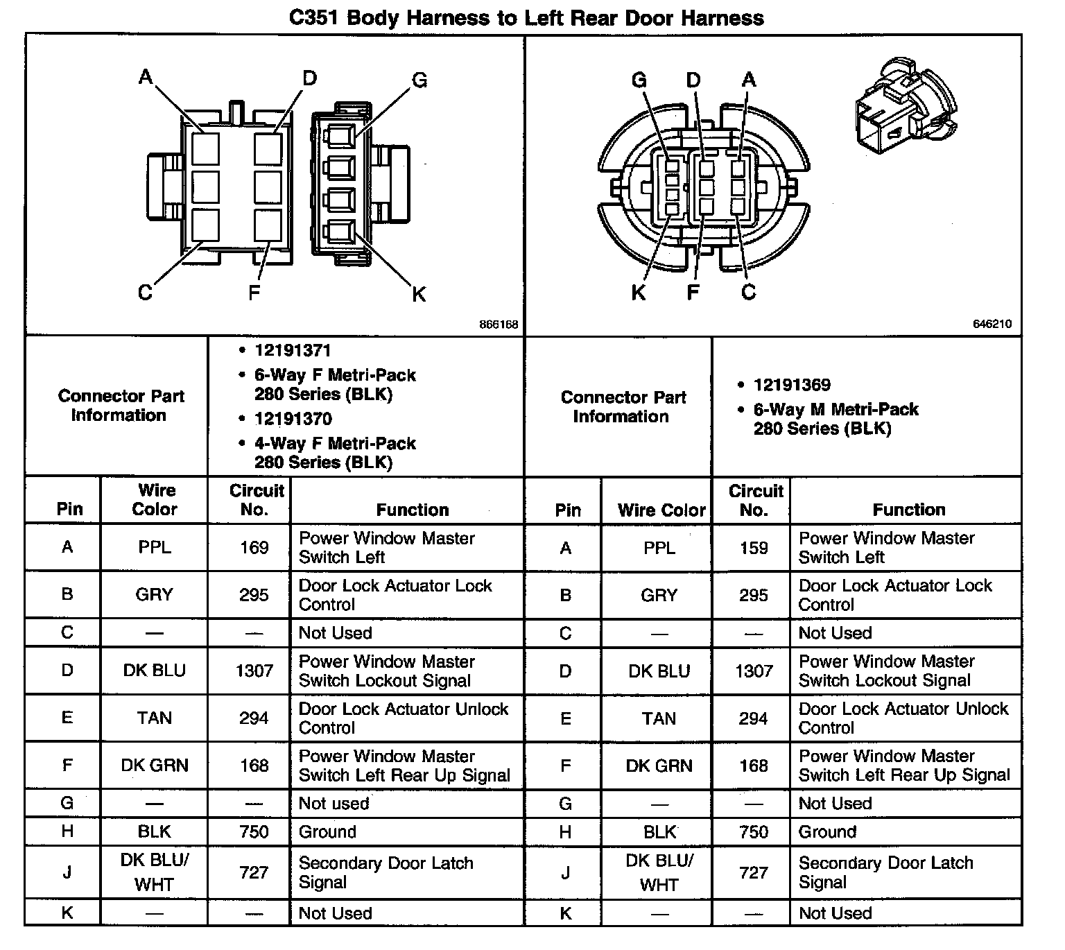 C351 Body Harness To Left Rear Door Harness: