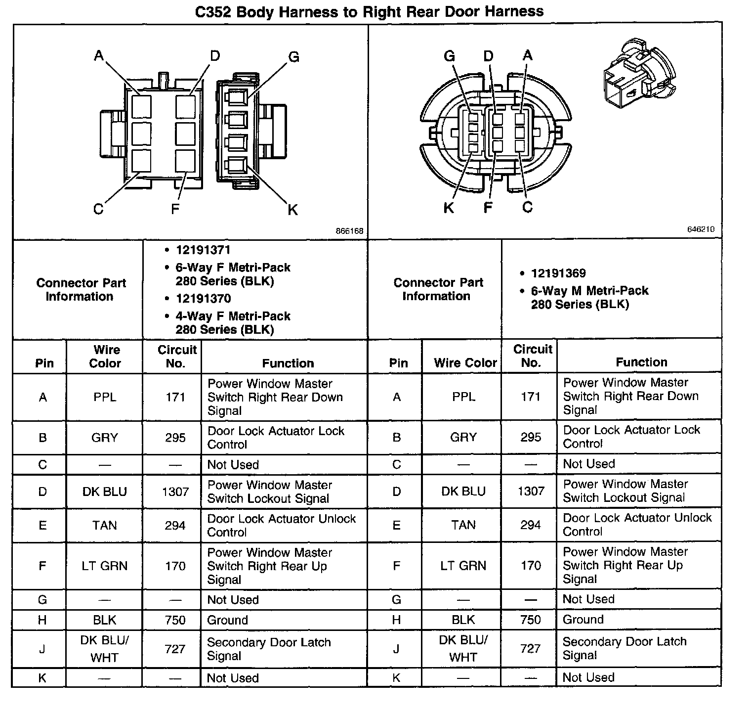 C352 Body Harness To Right Rear Door Harness: